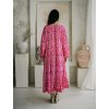 Dlouhé BOHO šaty Manuella jsou áčkového, volného střihu s dlouhým rukávem, který je zakončen gumou. Šaty mají na přední straně po celé délce rozepínatelné knoflíčky, na hrudi stahování na šňůrku se střapci. Střih šatů je vhodný kombinovat s páskem, ideální jsou také pro plnoštíhlou postavu.
