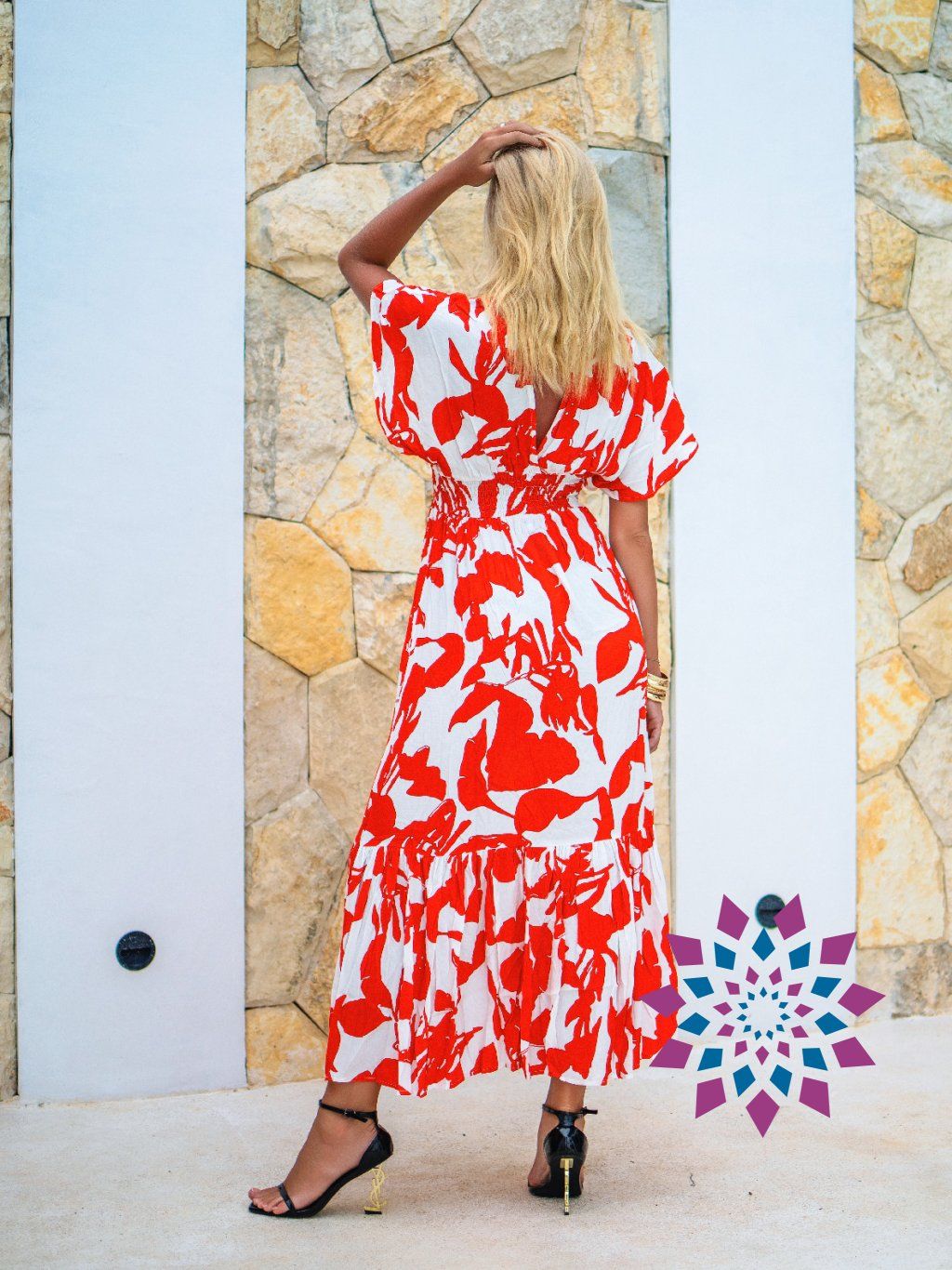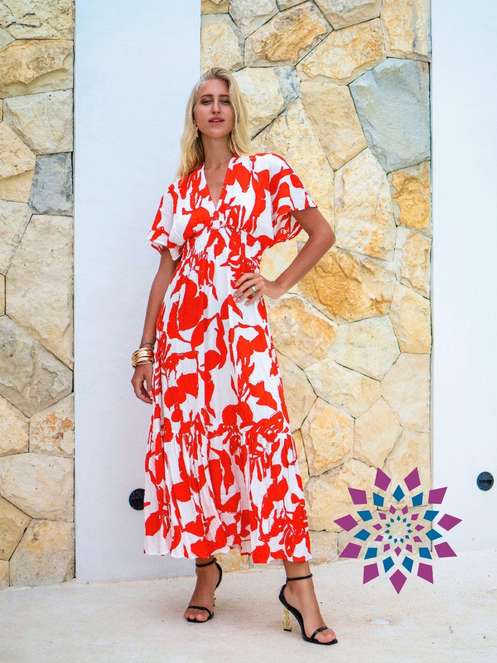 Materiál je 100% viskóza – kvalitní, jemná, na dotek blízká hedvábí. Na těle ji skoro nevnímáš. Střih je vzdušný, s důrazem na pohodlí a ženskou siluetu.
