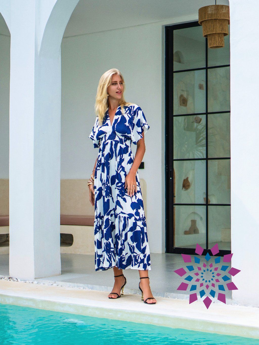 Materiál je 100% viskóza – kvalitní, jemná, na dotek blízká hedvábí. Na těle ji skoro nevnímáš. Střih je vzdušný, s důrazem na pohodlí a ženskou siluetu.