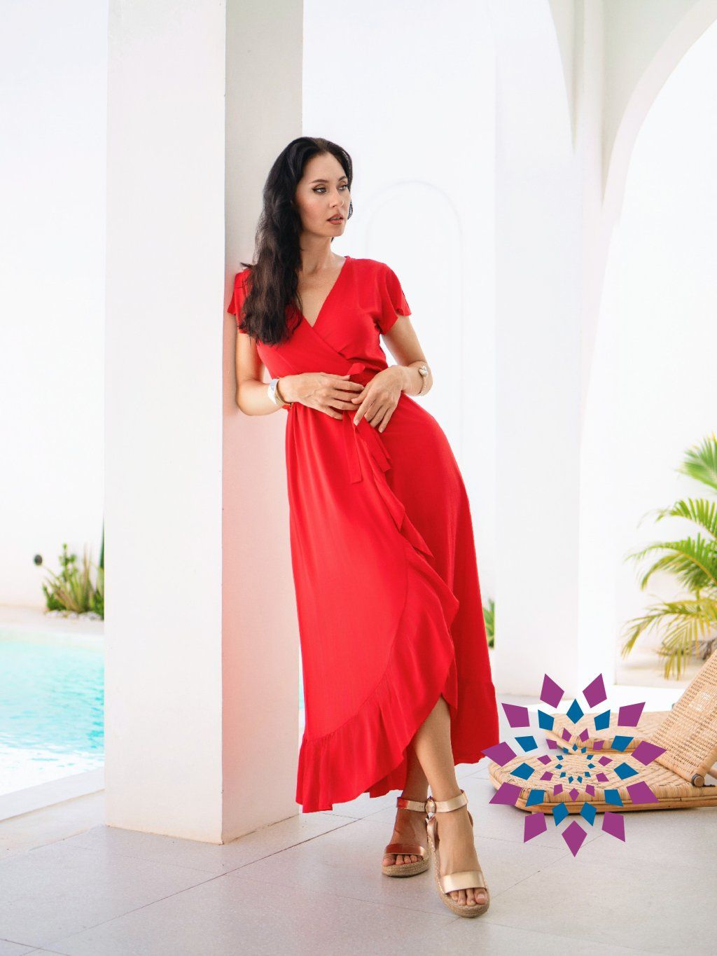 Dlouhé zavinovací šaty červené