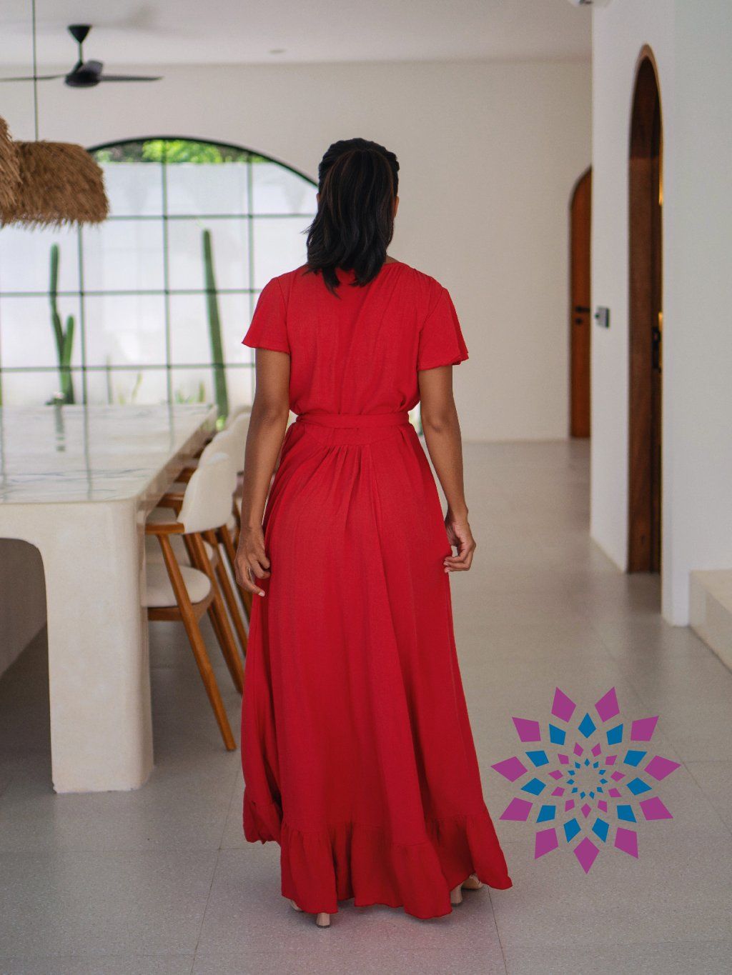 Střih si upravíš utažením v pase i hloubkou výstřihu. Šaty se přizpůsobí postavě, zvýrazní pas a nechají vyniknout dekolt tak, jak ti vyhovuje. Rukávy lehce kryjí ramena, spodní volánek přidává pohyb a udržuje tvar. Na těle jsou lehké, nelepí se a dobře se nosí i celý den.