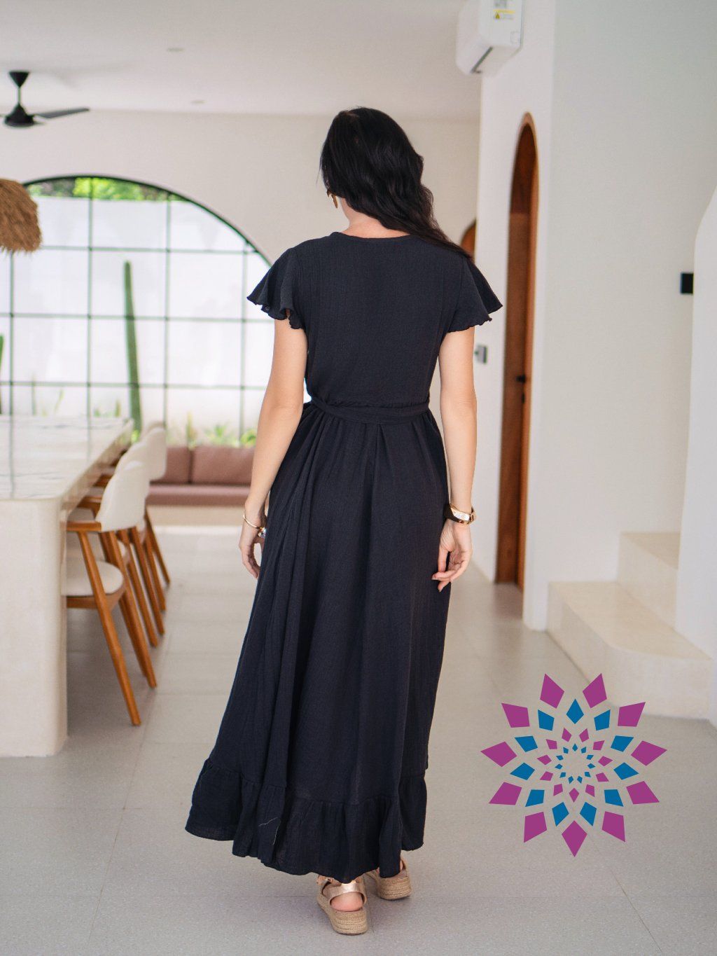 Dlouhé zavinovací mušelínové šaty, které si nastavíš podle sebe a cítíš se v nich volně.
