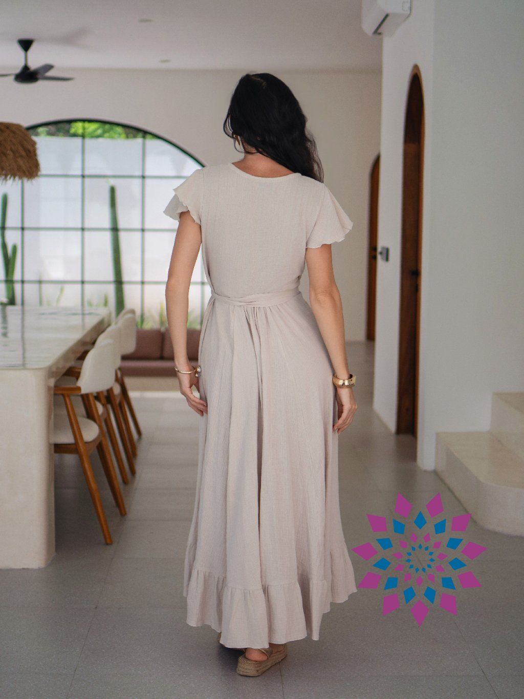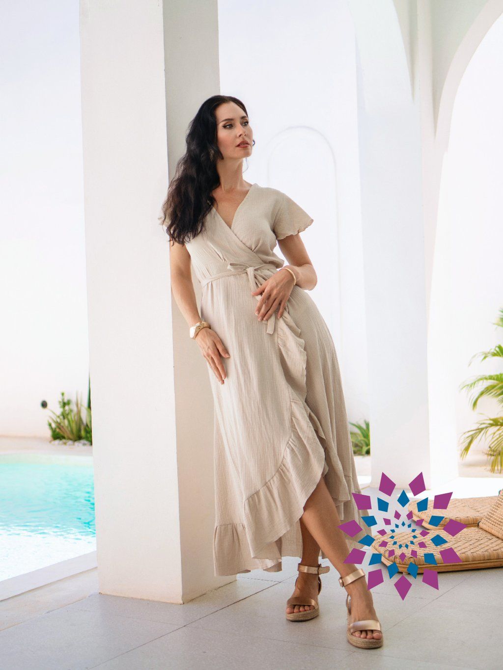 Dlouhé zavinovací mušelínové šaty, které si nastavíš podle sebe a cítíš se v nich volně.