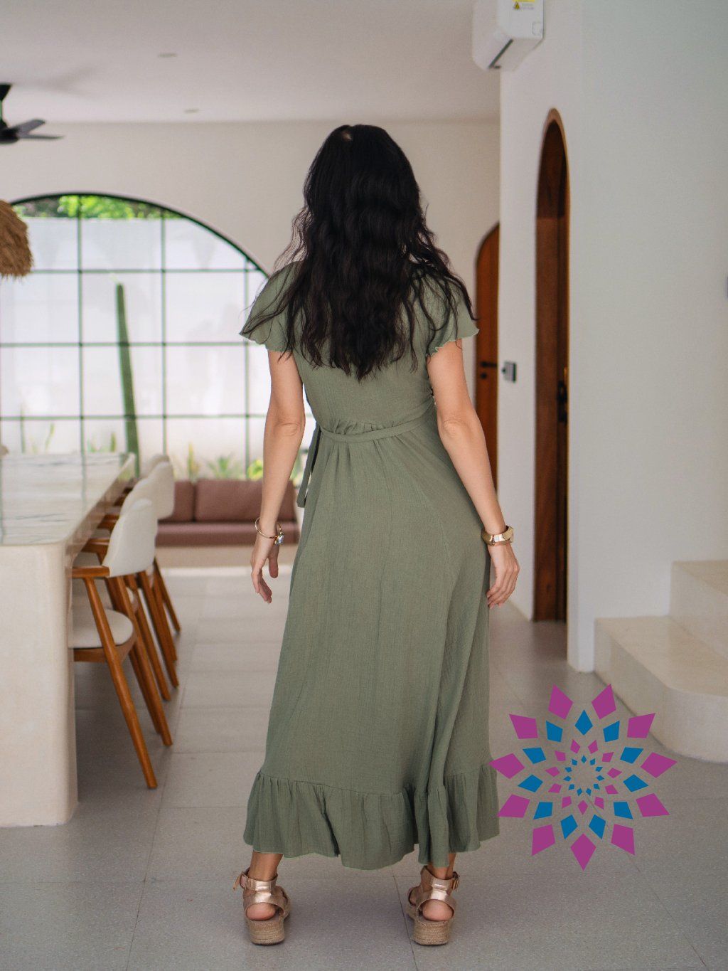 Dlouhé zavinovací mušelínové šaty, které si nastavíš podle sebe a cítíš se v nich volně.