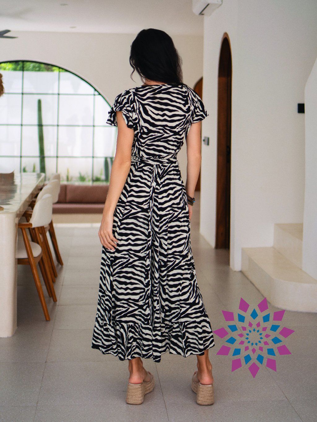 Střih si upravíš utažením v pase i hloubkou výstřihu. Šaty se přizpůsobí postavě, zvýrazní pas a nechají vyniknout dekolt tak, jak ti vyhovuje. Rukávy lehce kryjí ramena, spodní volánek přidává pohyb a udržuje tvar. Na těle jsou lehké, nelepí se a dobře se nosí i celý den.