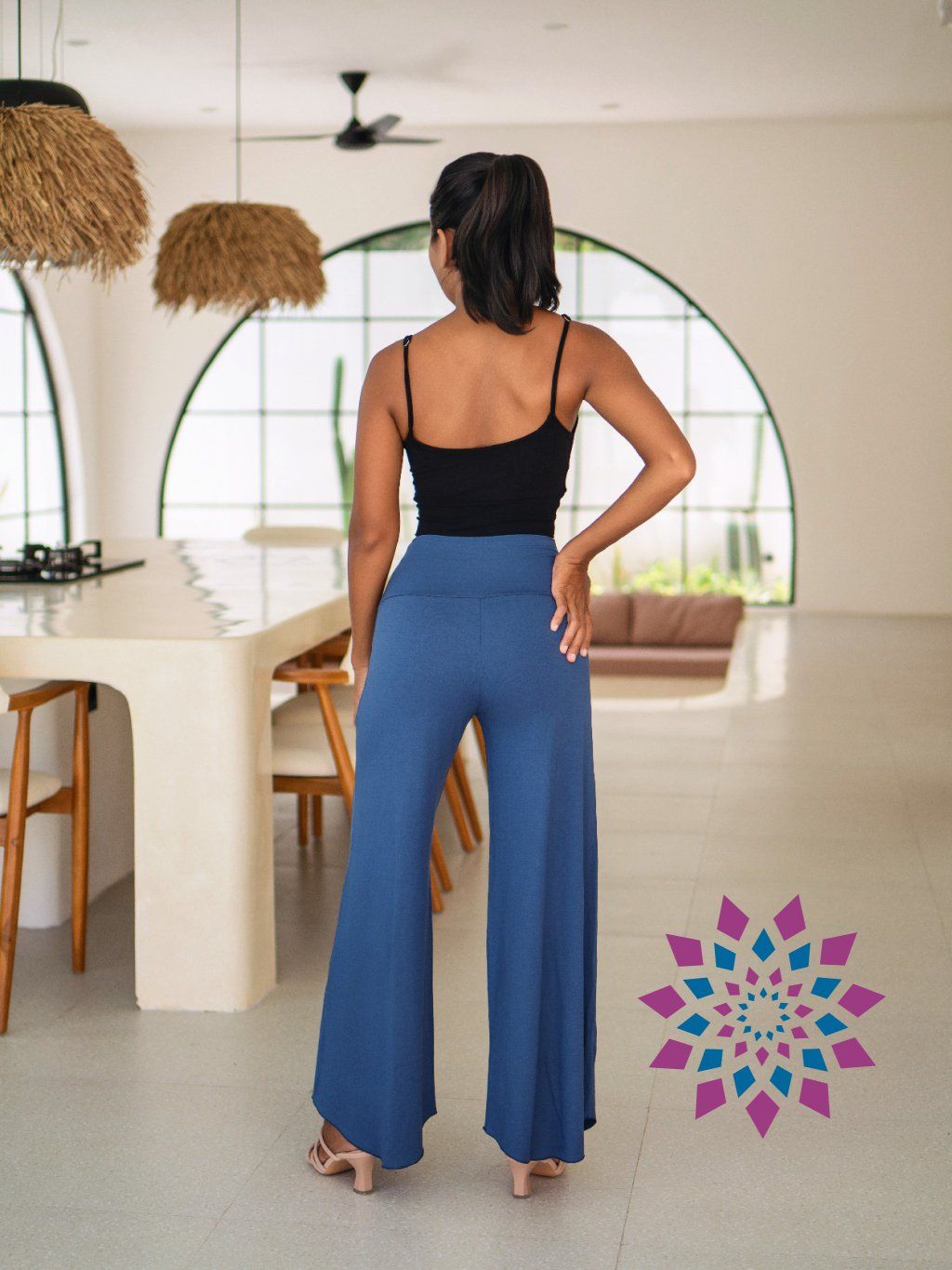 V pase sedí, jsou měkké a přizpůsobí se. Nohy jsou široké a při chůzi se přirozeně hýbou. Na těle nepřekáží a nechávají prostor pro pohyb. V kombinaci s topem vytváří čistý outfit.