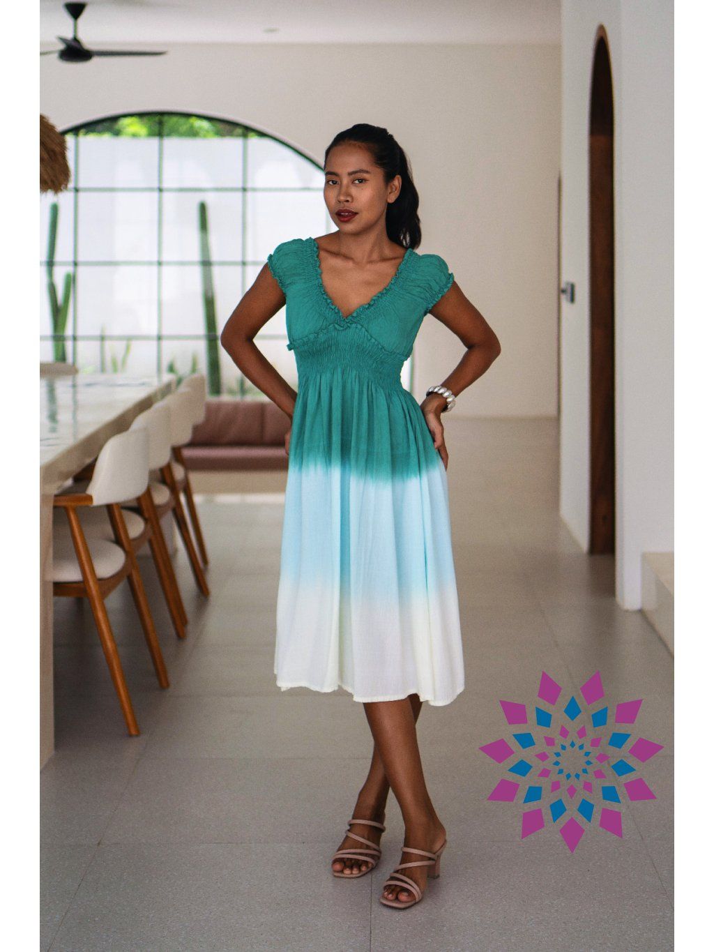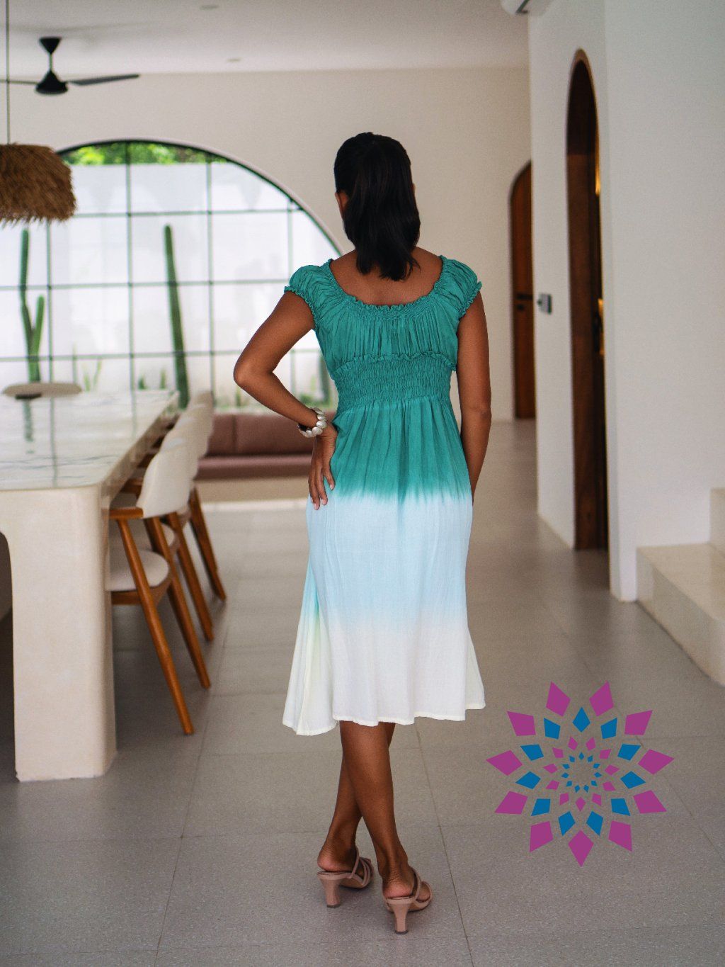 Barva: Zelenokrémová. Barvení technikou tie-dye vytváří přechody barev. Každý kus je trochu jiný.