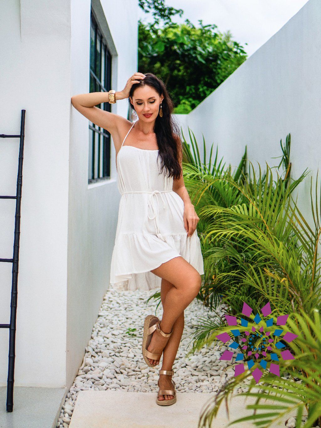 Krátké šaty s odkrytými zády, které zvýrazní nohy a působí lehce při každém kroku.