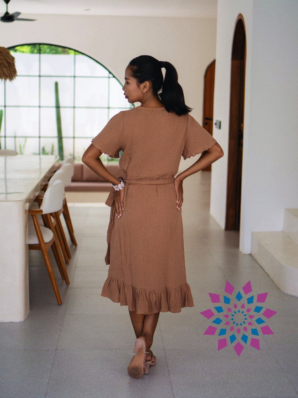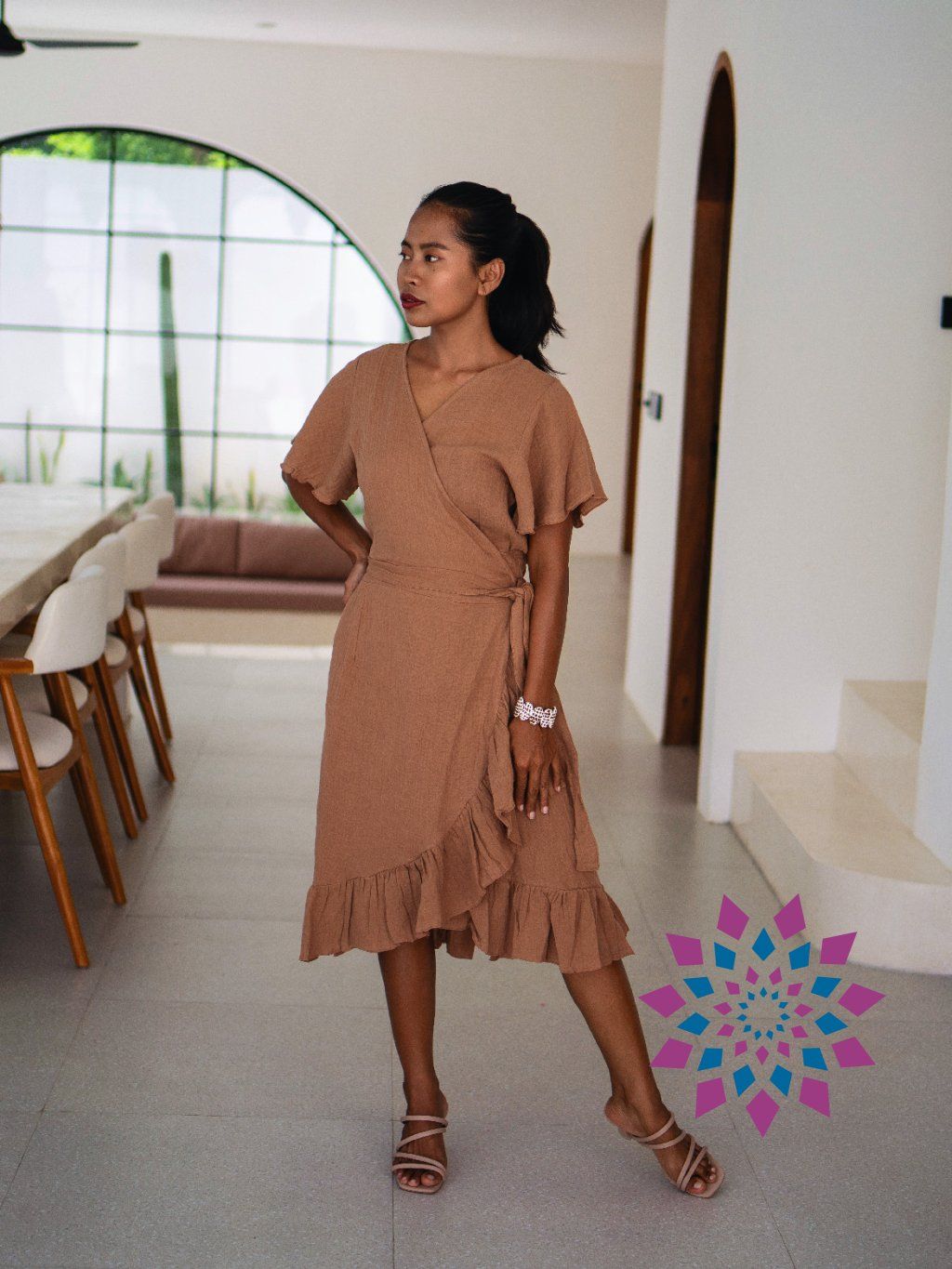 Krátké mušelínové zavinovací šaty, které si nastavíš podle sebe a cítíš se v nich volně.