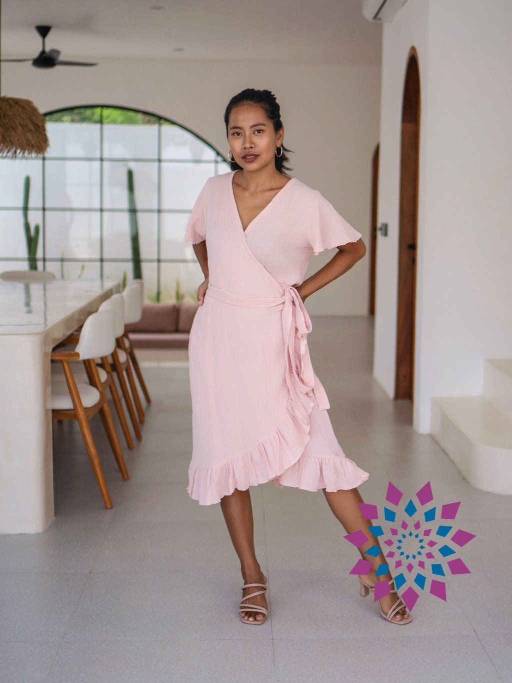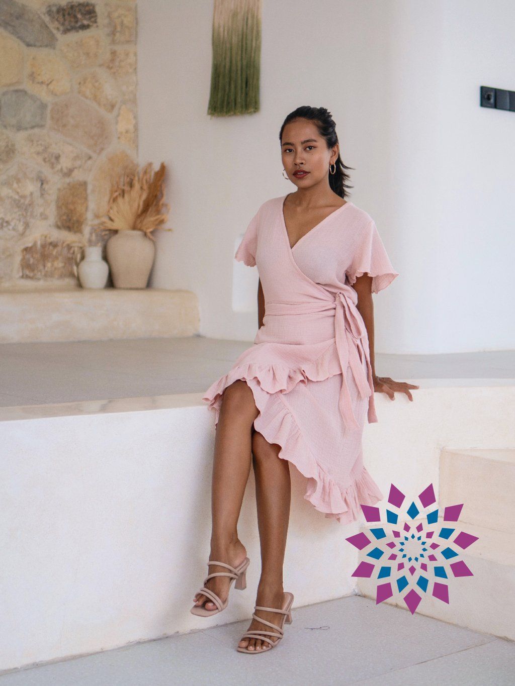 Krátké mušelínové zavinovací šaty, které si nastavíš podle sebe a cítíš se v nich volně.