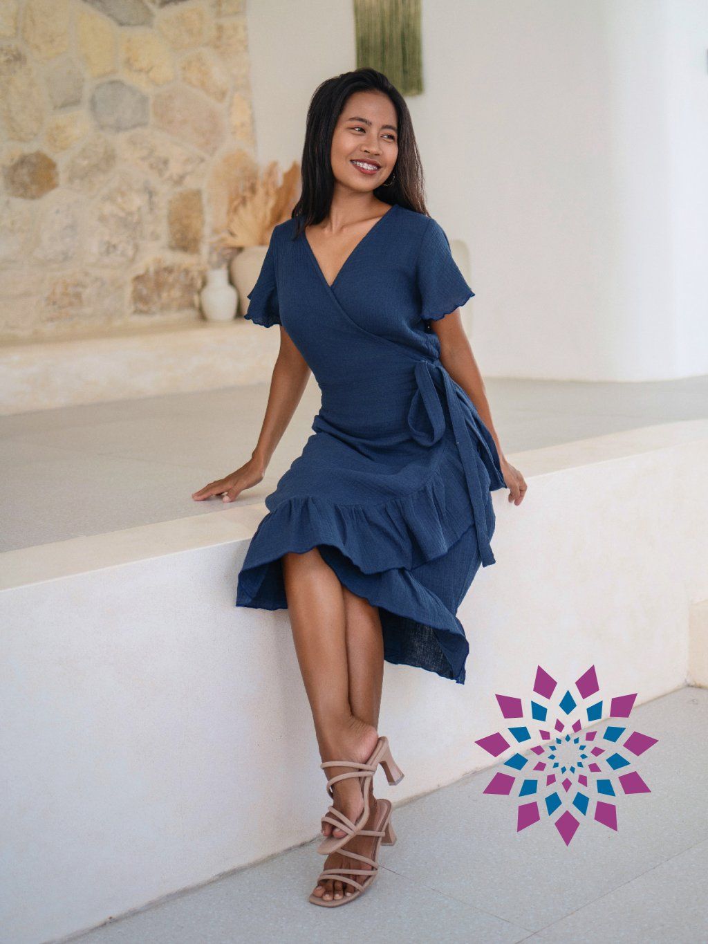 Krátké mušelínové zavinovací šaty, které si nastavíš podle sebe a cítíš se v nich volně.