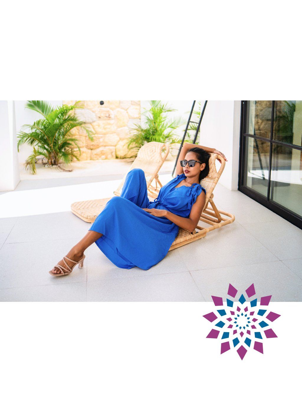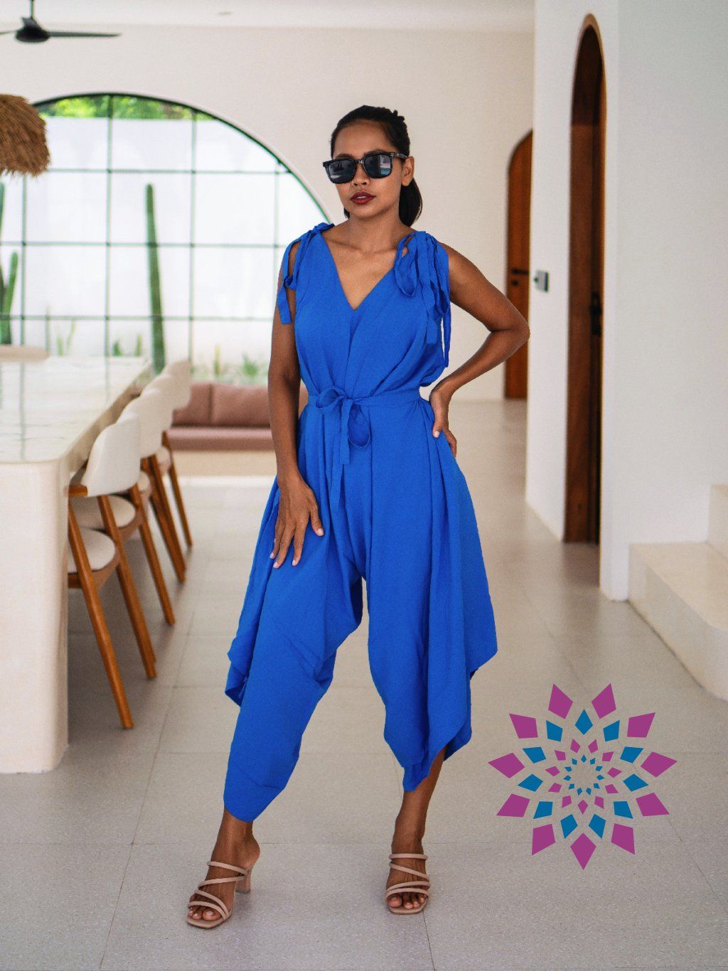 Na těle je vzdušný a nechává prostor pohybu. Při chůzi se volně rozvíjí kolem nohou a nepřekáží. Ramínka si uvážeš podle sebe, stejně tak si nastavíš i pas, takže sedí přesně tak, jak chceš. Výstřih si můžeš upravit podle nálady. Otevřená záda působí čistě a zvýrazní linii těla.