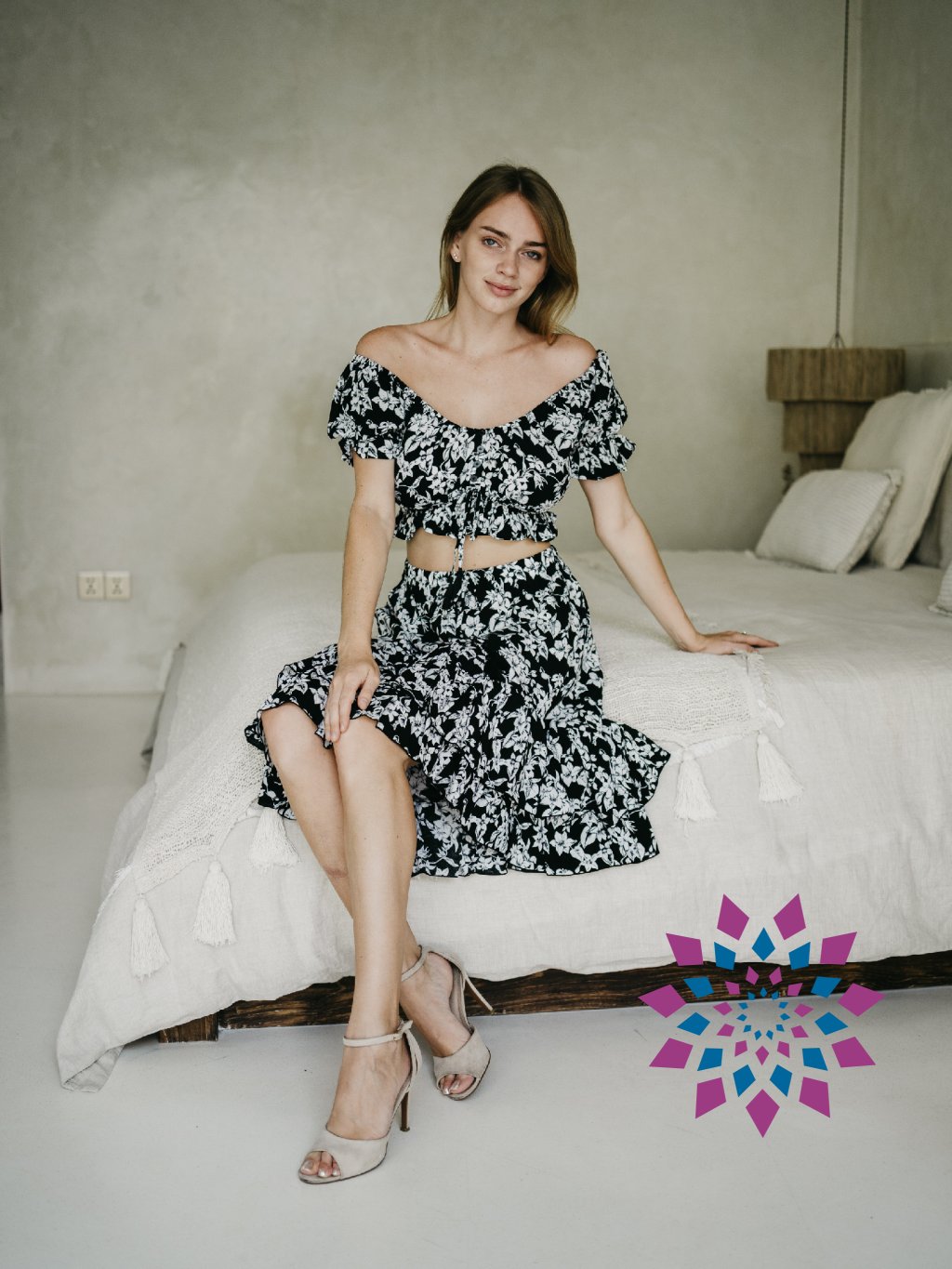 Set ISLA z kolekce SECRET šitý ze 100% viskózy I. jakosti Vás naprosto omámí svou jemností materiálu. Set se skládá ze sukně Isla, která má elastický pas se stahovací šňůrkou a střapci. Zdobí ji dvojitý volán, který jí dodává nádech španělské elegance. Top Isla s krátkým rukávkem, elastickou gumou pod prsy, je doplněn knoflíky na prsou a šňůrkou se střapci. Libovolně kombinujte sukni či top s jinými kousky oblečení.