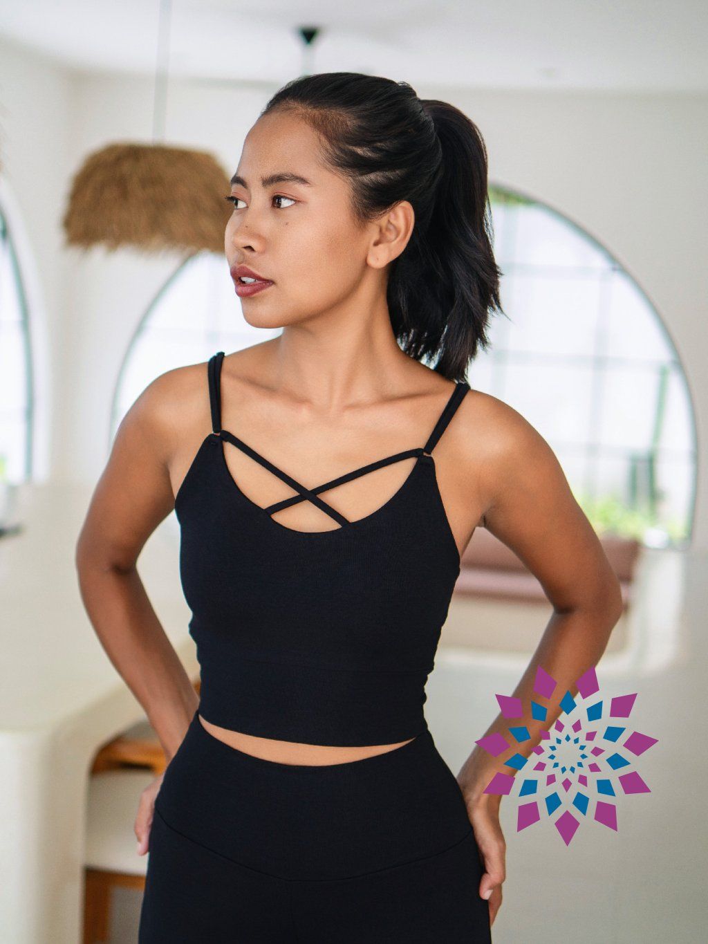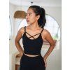 Na těle sedí přirozeně a přizpůsobí se pohybu bez omezení. Nastavitelná ramínka si upravíš podle sebe, takže top sedí přesně tak, jak potřebuješ. Přední překřížení vytváří nenápadný detail, který oživí jinak čistý střih.