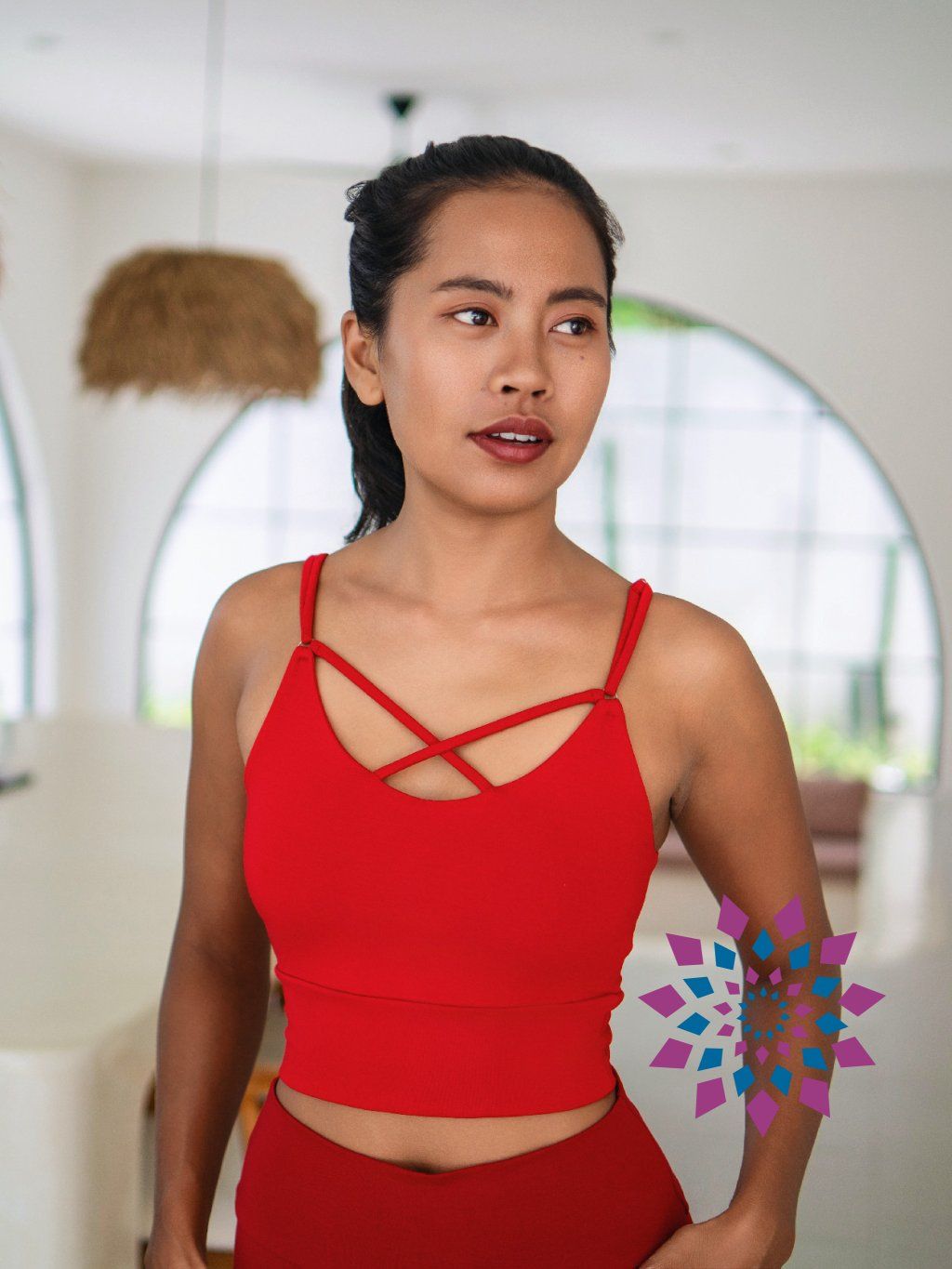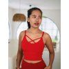 Na těle sedí přirozeně a přizpůsobí se pohybu bez omezení. Nastavitelná ramínka si upravíš podle sebe, takže top sedí přesně tak, jak potřebuješ. Přední překřížení vytváří nenápadný detail, který oživí jinak čistý střih.
