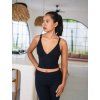 Na těle sedí přirozeně a přizpůsobí se pohybu bez omezení. Přední výstřih do V působí čistě, zatímco zadní křížení dodává něžný detail a drží top na místě. Ramínka jsou tenká a nenarušují celkový dojem.