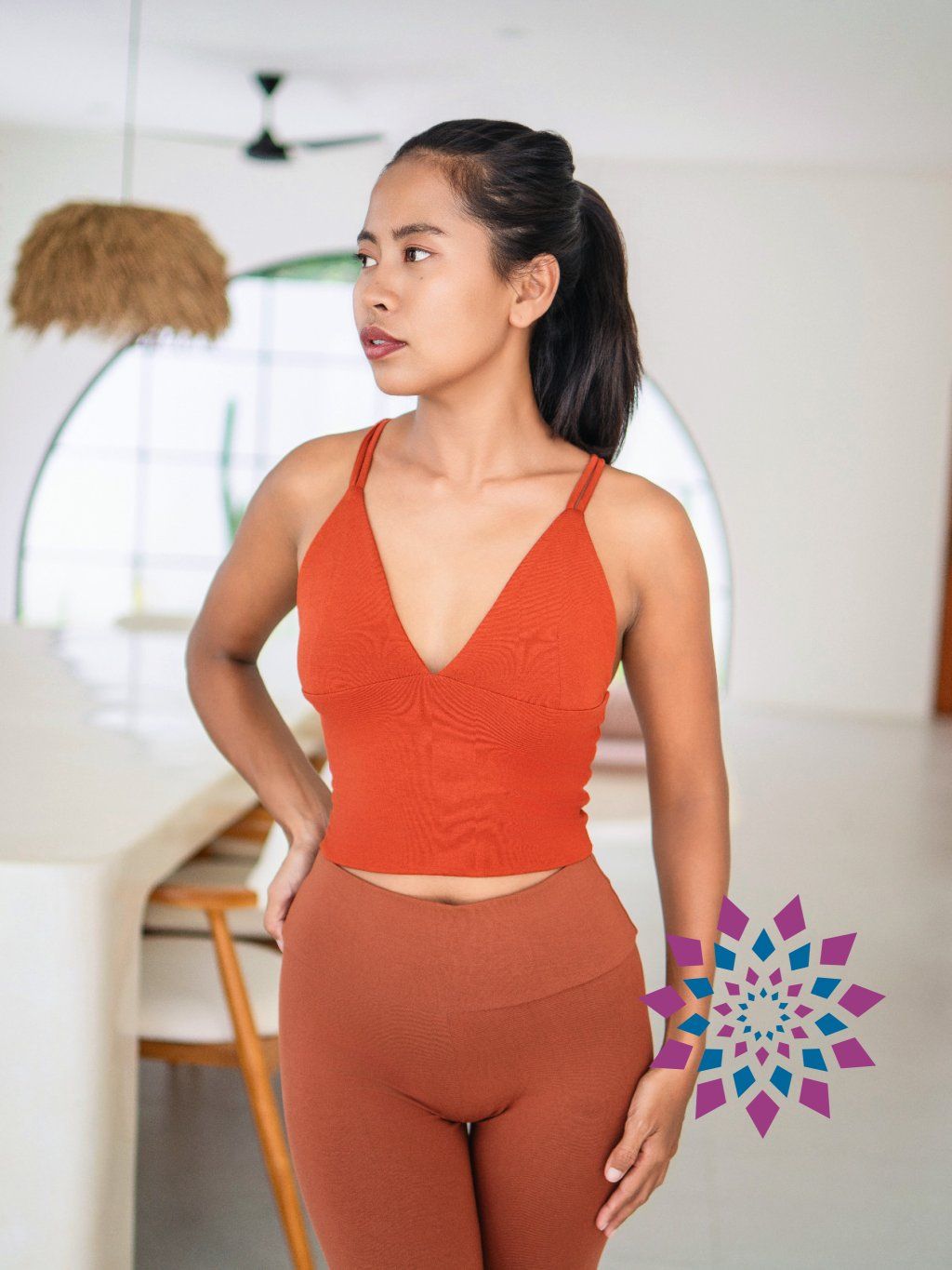 Vezmeš si ho na jógu, na doma i ven jako krátký top. Snadno ho sladíš s legínami i volnějšími kousky.